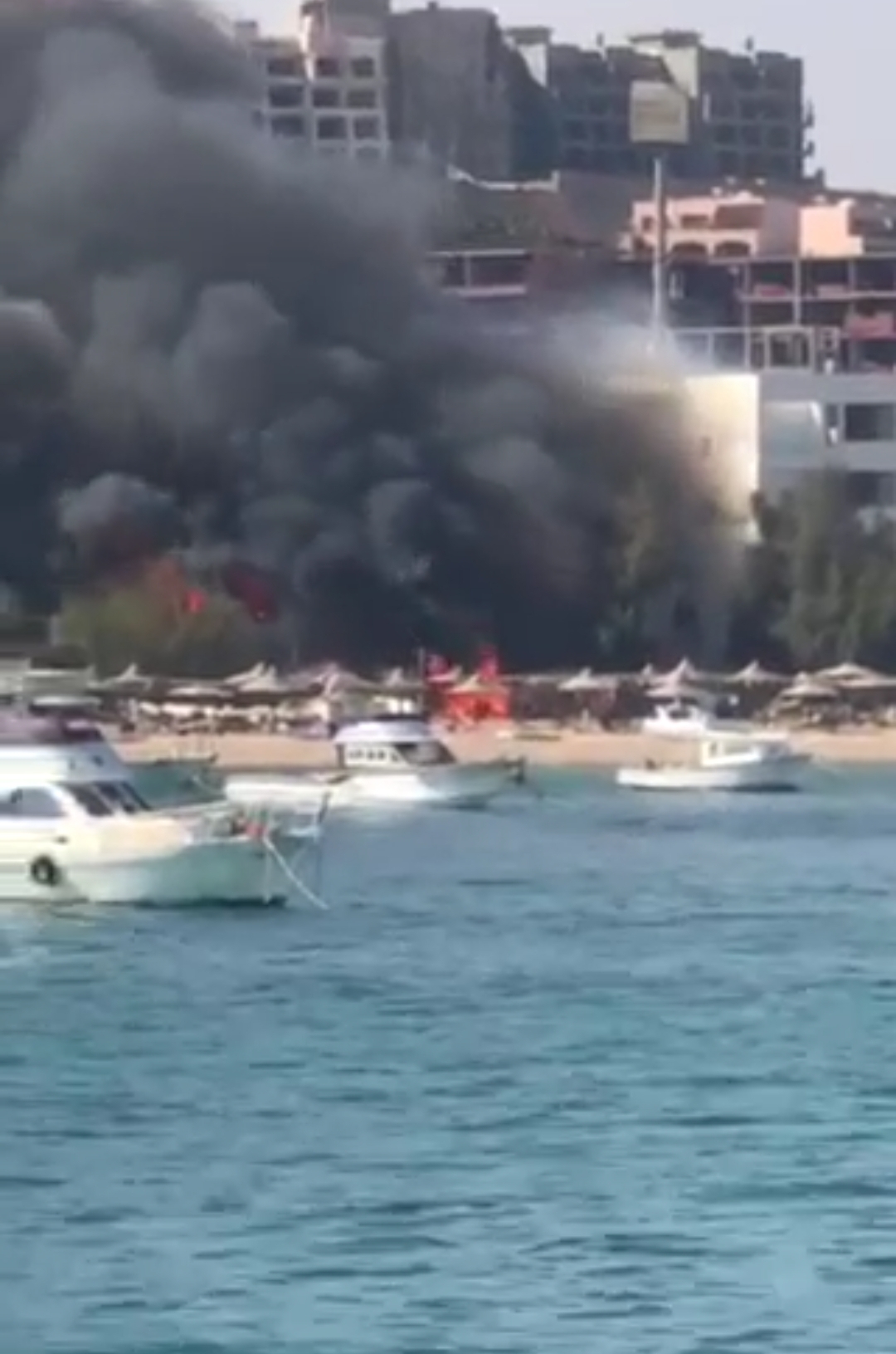 السيطرة على حريق نشب في أحد الشواطئ الخاصة بالغردقة| صور وفيديو