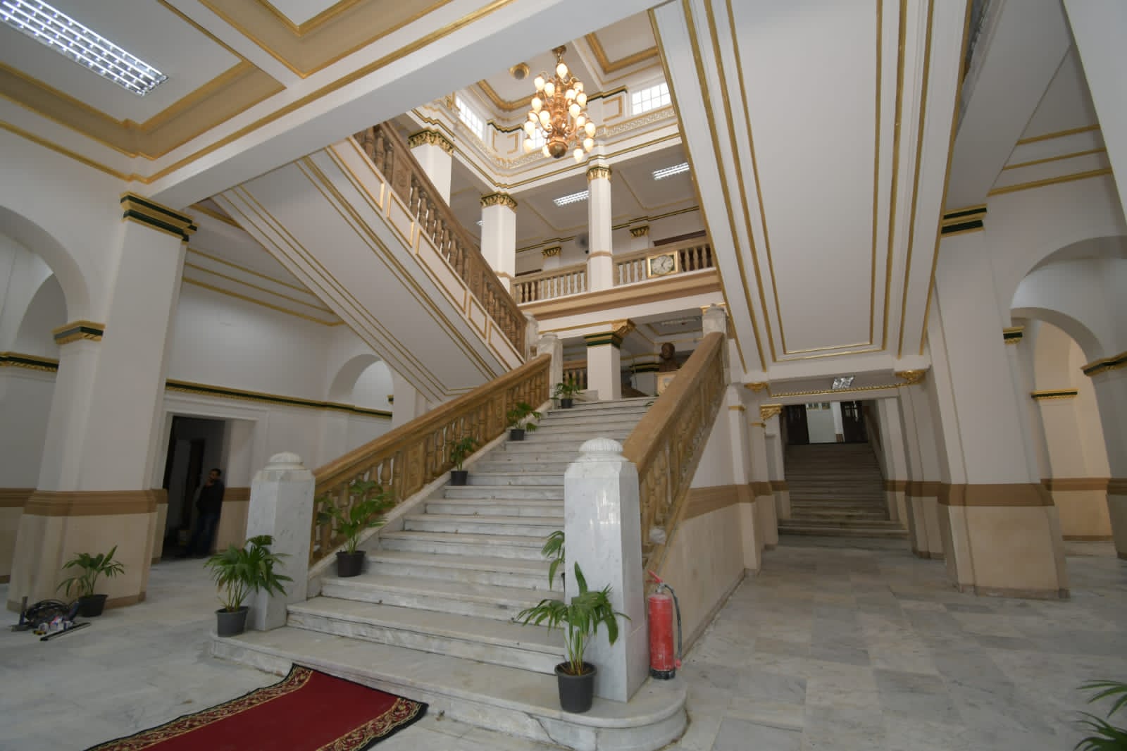 وأوضح رئيس جامعة القاهرة، أنه تم إعداد خطط الترميم الدقيق وعمل المكاشف اللونية، والقيام بأعمال العزل المائي لكامل سطح المبنى طبقًا للمواصفات الفنية ومعايير الجودة العالمية، بالإضافة إلى أعمال الإزالة لطبقات الدهانات المستحدثة والتالفة لأسطح الجدران والأبواب والشبابيك ومعالجتها وإعادة طلائها بالمواد والألوان المطابقة للحالة الأصلية وطبقًا للمواصفات الفنية، وإزالة طبقات الطلاء المستحدثة بالمناضد والمقاعد الأصلية ومعالجتها وإعادتها إلى حالتها الأصلية.