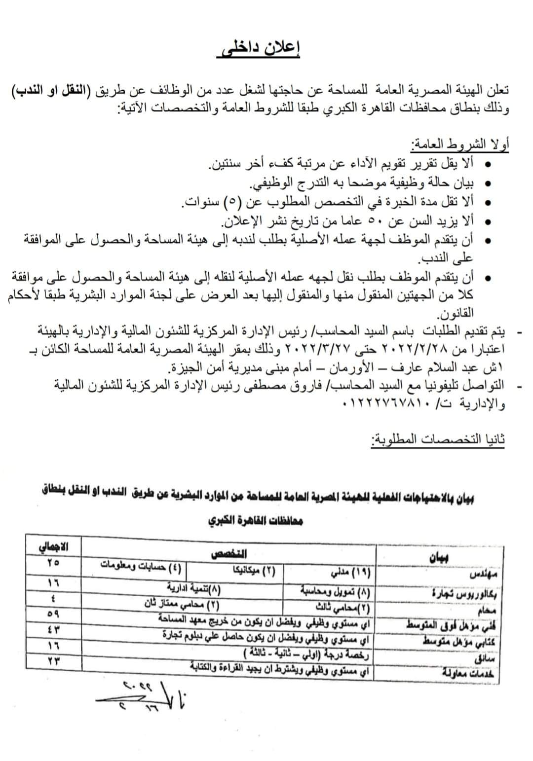وأكد الخطاب أن الوظائف المتاحة، بنطاق محافظات القاهرة الكبرى طبقا للشروط العامة والتخصصات الآتية.