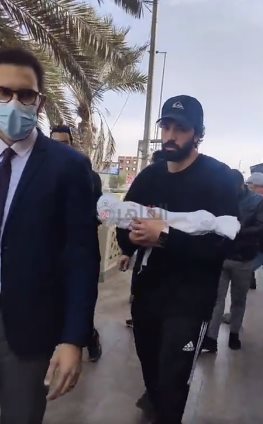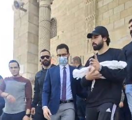 حسرة وقهر.. حازم إيهاب يحمل نجله الرضيع بالكفن لمثواه الأخير | صور
