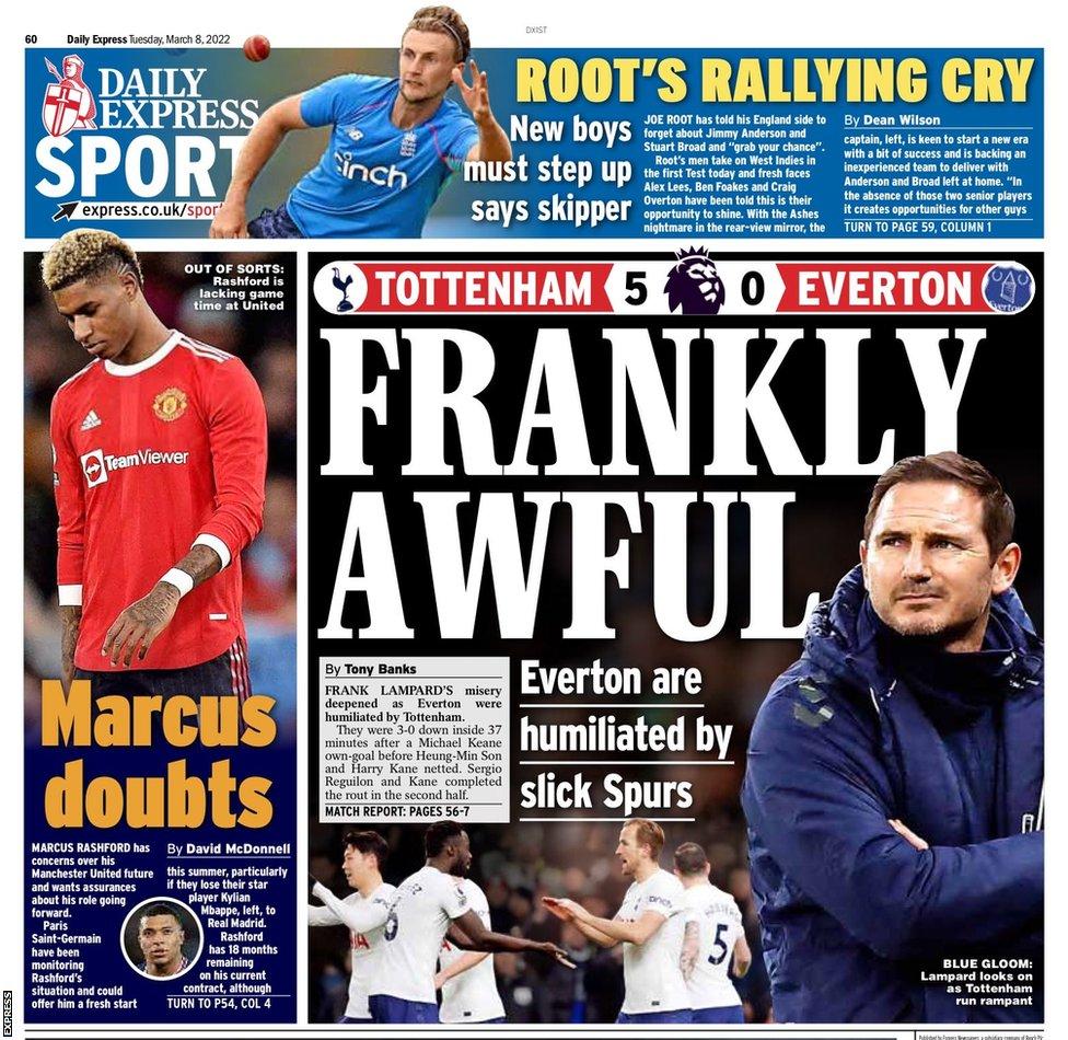 عنونت إكسبريس في غلافها اليوم بـ "شكوك راشفورد"، وذلك بعد أن قالت الصحيفة إن مستقبل راشفورد في الفترة الأخيرة بات غامضًا إلى حد كبير.