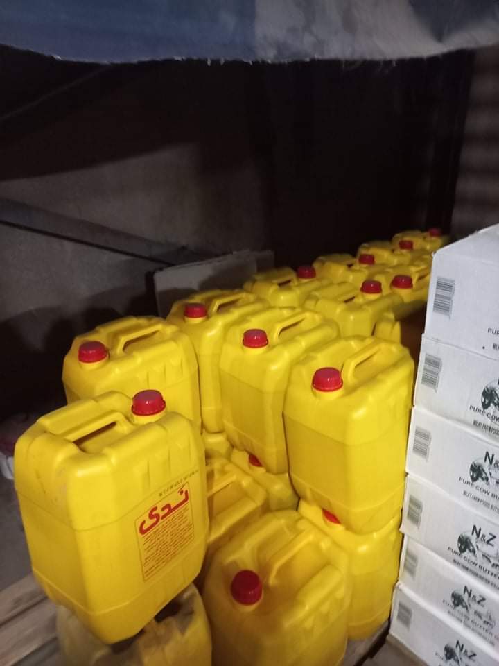 وتمكنت حملة مكبرة من ضبط مخزن تابع لأحد المحال التجارية، بحوزته كمية تقدر بـ 1250 كجم من الأرز، معبأ داخل شكائر بغرض التخزين والبيع بأسعار أعلى؛ لتحقيق أكبر ربح ممكن دون وجه حق، كما تم ضبط كمية تقدر بـ 750 كجم من زيت أولين مجهول دون فواتير، مخالفًا للقانون 330 لسنة 2017 الخاص بحظر تداول السلع الغذائية مجهولة المصدر دون فواتير ضريبة، تثبت سعر بيع المورد والسعر المقترح للمستهلك، وجرى تخزينه بهدف زيادة السعر والتربح.