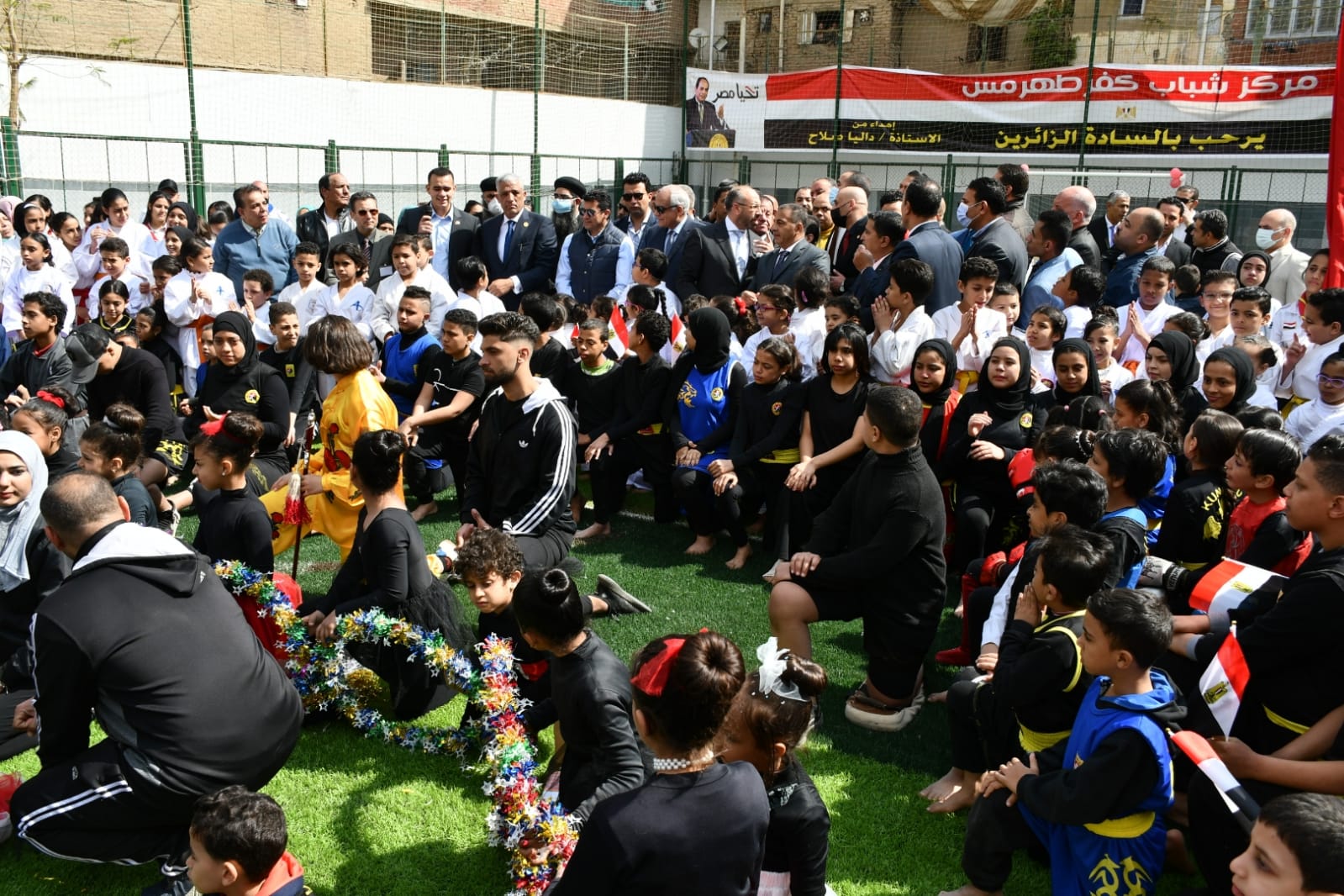 وبدأ وزير الشباب والرياضة جولته الصباحية، يرافقه السيد اللواء أحمد راشد محافظ الجيزة، ولفيف من قيادات وزارة الشباب والرياضة والقيادات التنفيذية والبرلمانية بالمحافظة، بافتتاح ملاعب نجيل صناعي وتفقد أعمال التطوير، ومتابعة الأنشطة والفعاليات والفقرات المتنوعة والبرامج المنفذة بمركز شباب كفر طهرمس ومركز شباب خرطة عاصم.