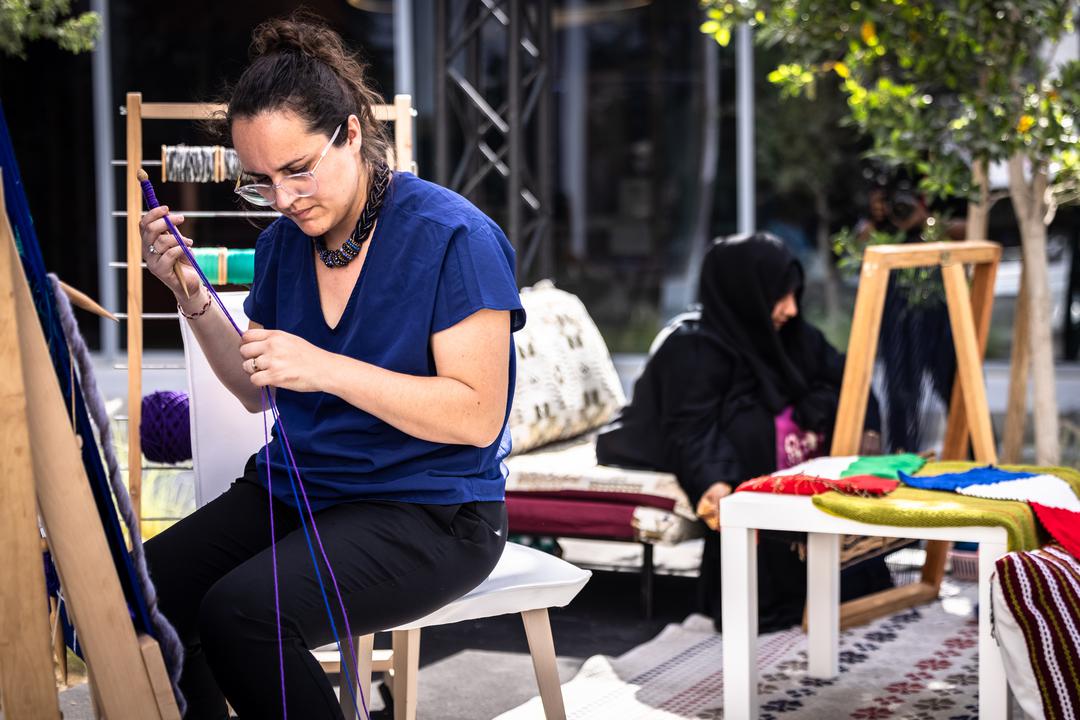 وأضاف: في فرنسا نركز على المفروشات التي يتم تعليقها والمصنوعة من الصوف، بينما يتم استخدامها في دولة الإمارات بشكل أكبر لعمل أغطية للأرضيات والوسائد، ونسيج السدو هو أسلوب فني مهم للغاية، لذلك فمن الجميل حقًا عرضه في إكسبو 2020 ليتعلم الزوار المزيد عنه، فهو تقليد يحتاج للبقاء على قيد الحياة، وما أقوم به اليوم هو نسيج للوحة حائط تجمع بين جناح فرنسا وساحة الوصل.