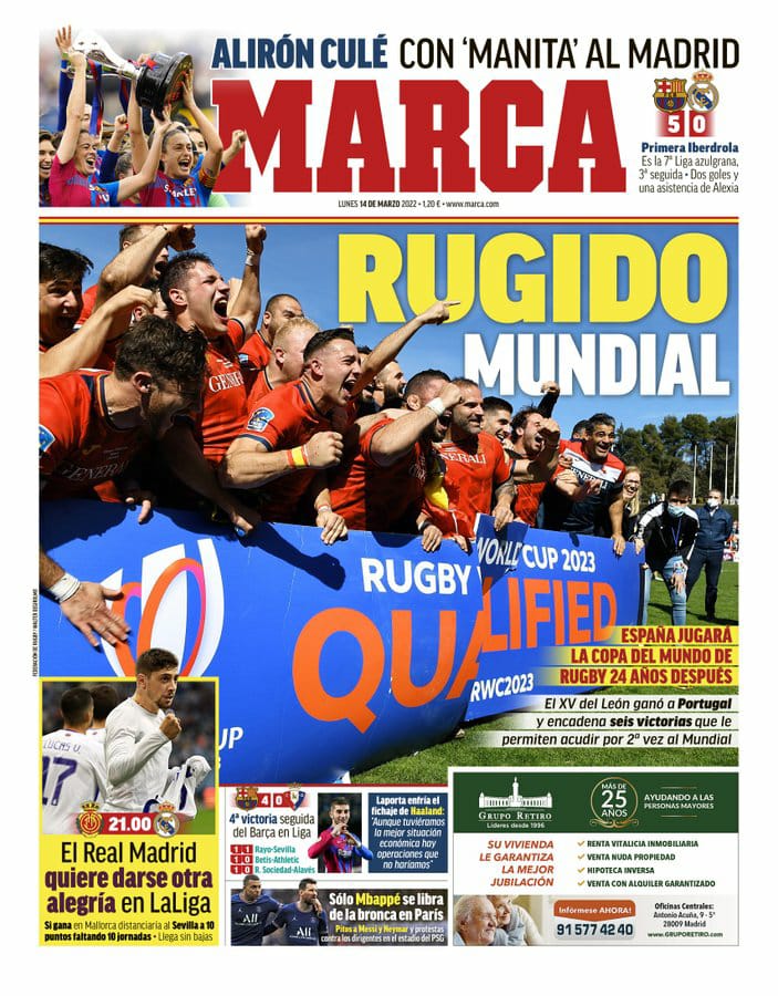 عنونت ماركا في غلافها اليوم بـ ريال مدريد يريد تحقيق انتصار جديد في الليجا، حيث قالت: إذا فاز في مايوركا، سوف يبتعد 10 نقاط عن إشبيلية مع تبقي 10 مباريات في الدوري.