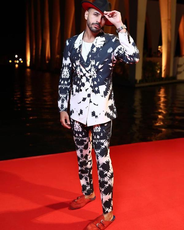 ارتدى الفنان إسلام إبراهيم بدلة غريبة، خلال مشاركته في مهرجان الجونة السينمائي، حيث ظهر ببدلة تنقسم إلى لونيين، أسود وأبيض، ويضع شنب بوجهه، ونظارة سوداء.