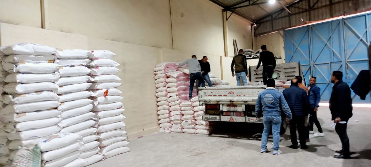 ضبط مخزن بداخله 20 طن دقيق بقصد احتكارها وبيعها بالسوق السوداء بالطالبية