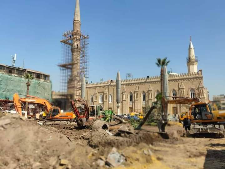 وتابع أنه يجري الآن، العمل على إزالة الحديقة المقابلة للباب الرئيسي لمسجد الإمام الحسين، استعدادا لبناء حمامات تحت الأرض، متصلة بالمسجد.