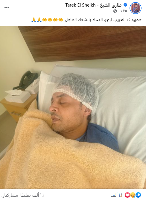ونشر طارق الشيخ صورة له عبر حسابه الشخصي بموقع التواصل الاجتماعي فيس بوك، وعلق عليها قائلًا: جمهوري الحبيب أرجو الدعاء لي بالشفاء العاجل.