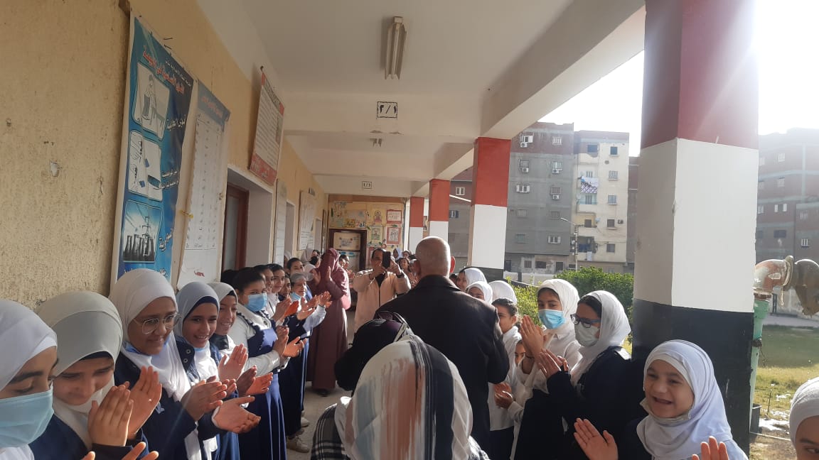 تقديرًا لمجهوداته.. طلاب الإسماعيلية ينظمون ممرًا شرفًا لمدرسهم بعد خروجه على المعاش