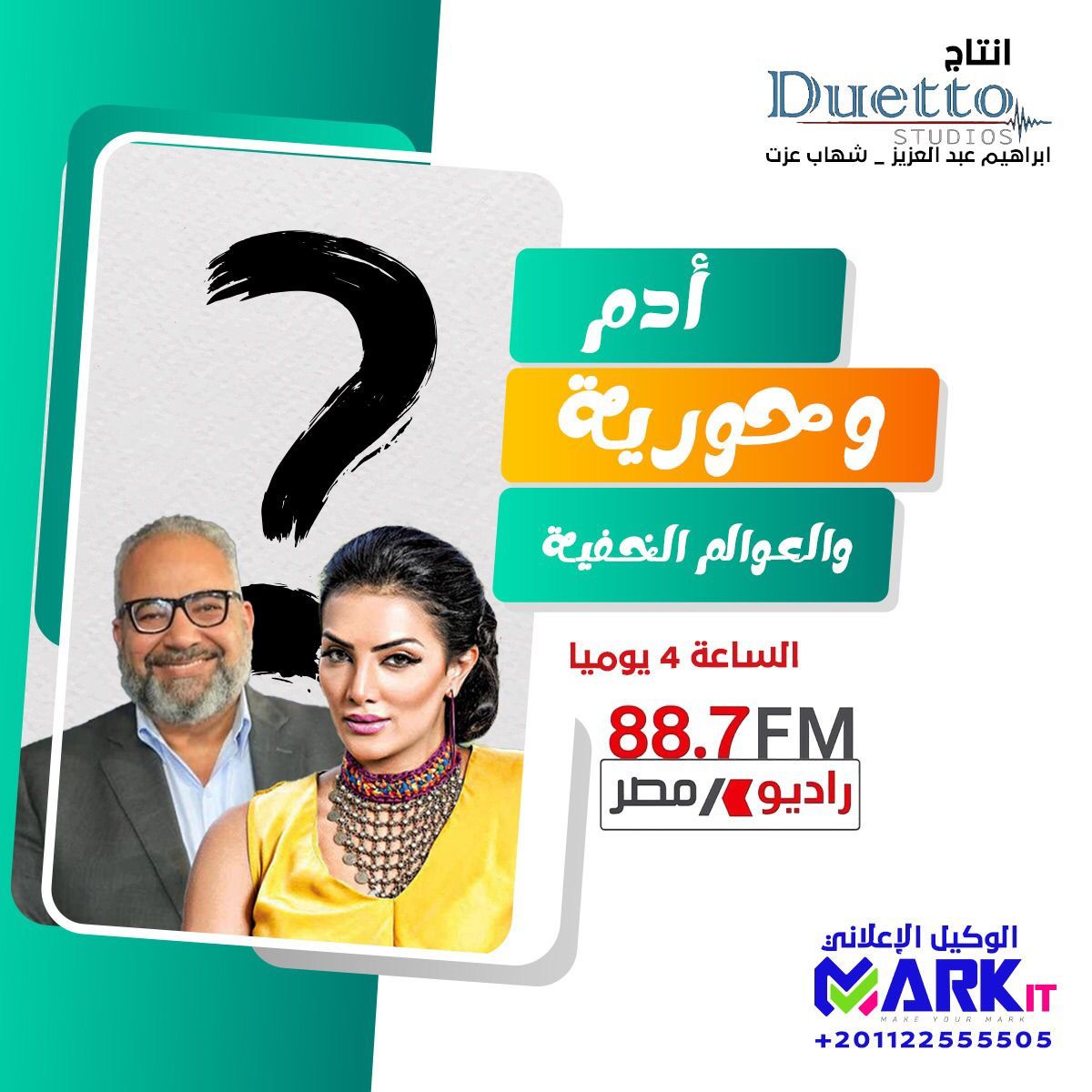 تستعد الفنانة حورية فرغلي، والنجم بيومي فؤاد، لإذاعة مسلسلهما، آدم وحورية والعوامل الخفية، خلال الأيام المقبلة، مع بدء الموسم الرمضاني المقبل 2022، حيث سيتم بثه على راديو إف إم - راديو مصر 88.7.