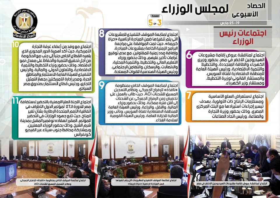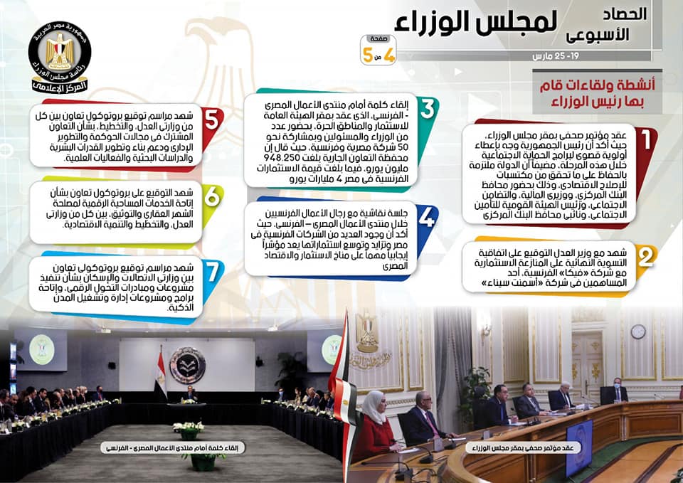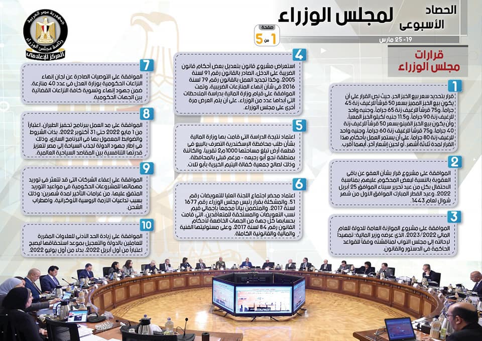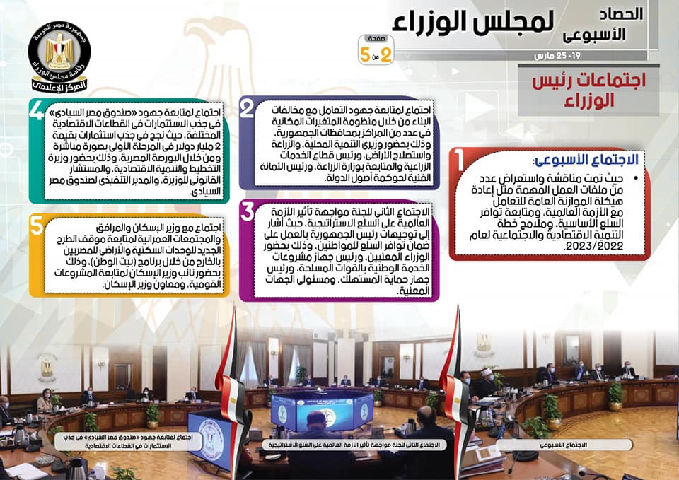 الحصاد الأسبوعي لمجلس الوزراء