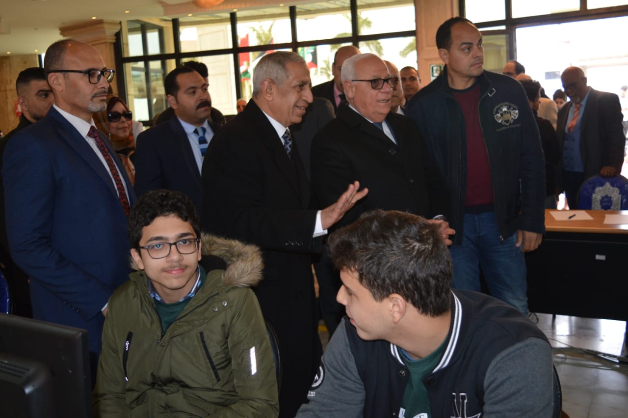 محافظ بورسعيد ورئيس الأكاديمية العربية يشهدان التصفيات النهائيه لمسابقة البرمجة