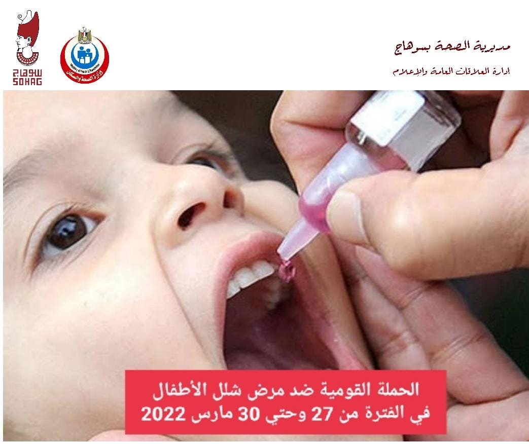 تنطلق اليوم الأحد، الحملة القومية للتطعيم ضد مرض شلل الأطفال، في جميع مراكز وقرى محافظة سوهاج.