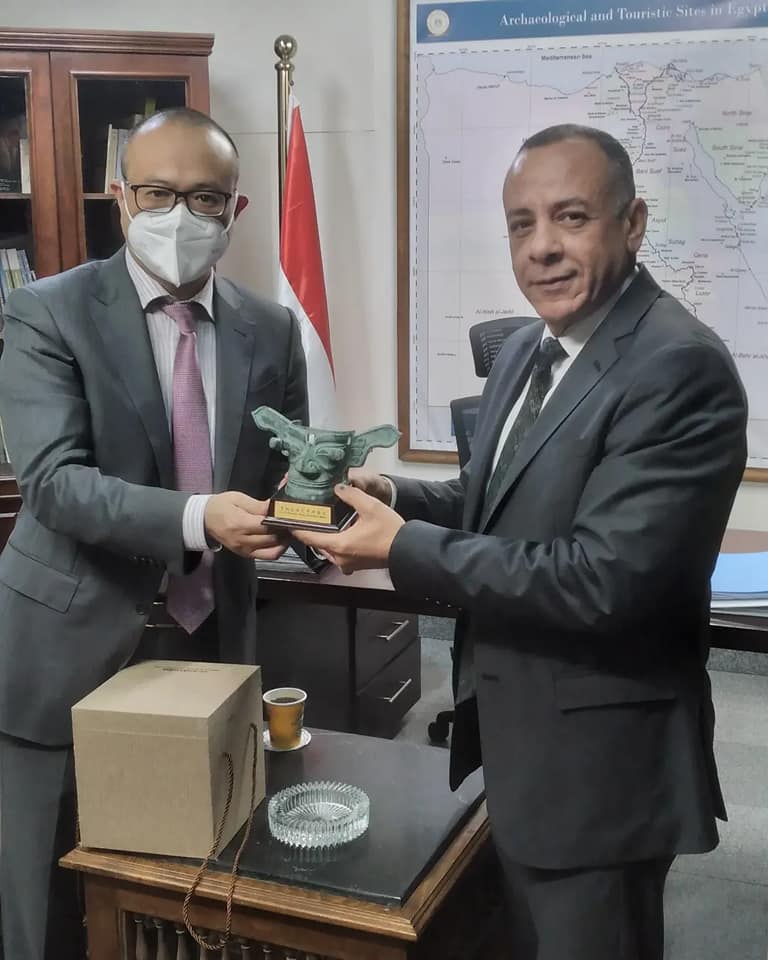 اجتمع اليوم الدكتور مصطفي وزيري الأمين العام للمجلس الأعلى للآثار، مع سامي يانغ المستشار الثقافي بسفارة الصين لدى مصر ومدير المركز الثقافي الصيني بالقاهرة، ومندوب حكومة الصين للشئون السياحية لدى مصر، والجزائر، وتونس، ولبنان، والسودان.