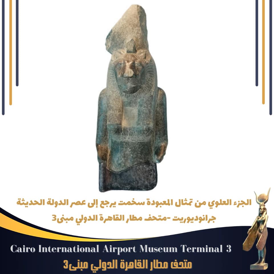 متحف مطار القاهرة يعرض تمثالًا من الجرانيت للمعبودة سخمت