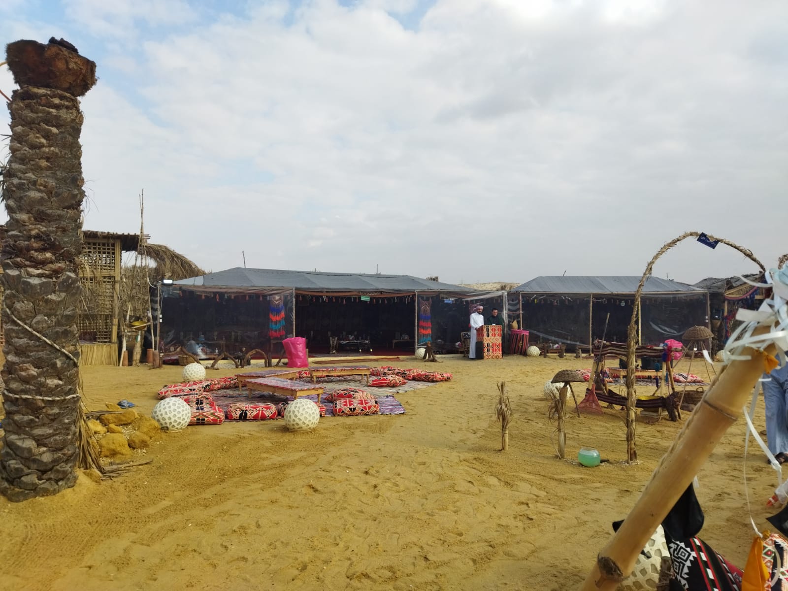 بيوت من الشعر وجريد النخيل.. تفاصيل أول مشروع استثماري بمحمية الغابة المتحجرة