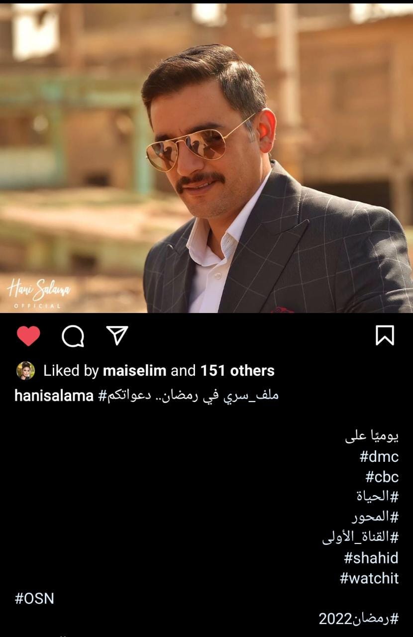 ونشر الفنان هاني سلامة عبر حسابه بموقع إنستجرام، صورته ضمن أحداث المسلسل، وعلق عليها: مسلسل ملف سري.. دعواتكم.
