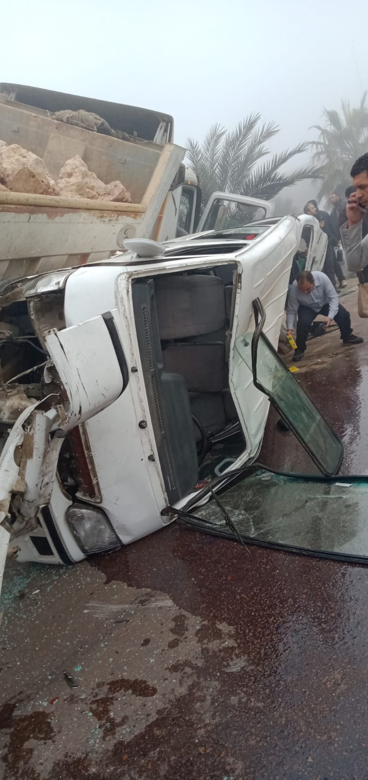 وكان طريق الإسكندرية الصحراوي، قد شهد حادث مروري بانقلاب سيارة نقل ثقيل مُحملة بالطوب، على سيارة ميكروباص وعدد من سيارات الملاكي، وذلك في الدقائق الأولى بعد فتح الطريق عقب غلقه بسبب الشبورة المائية التي تتعرض لها الإسكندرية منذ الساعات الأولى اليوم والتي تحجب الرؤية عن السيارات المارة.