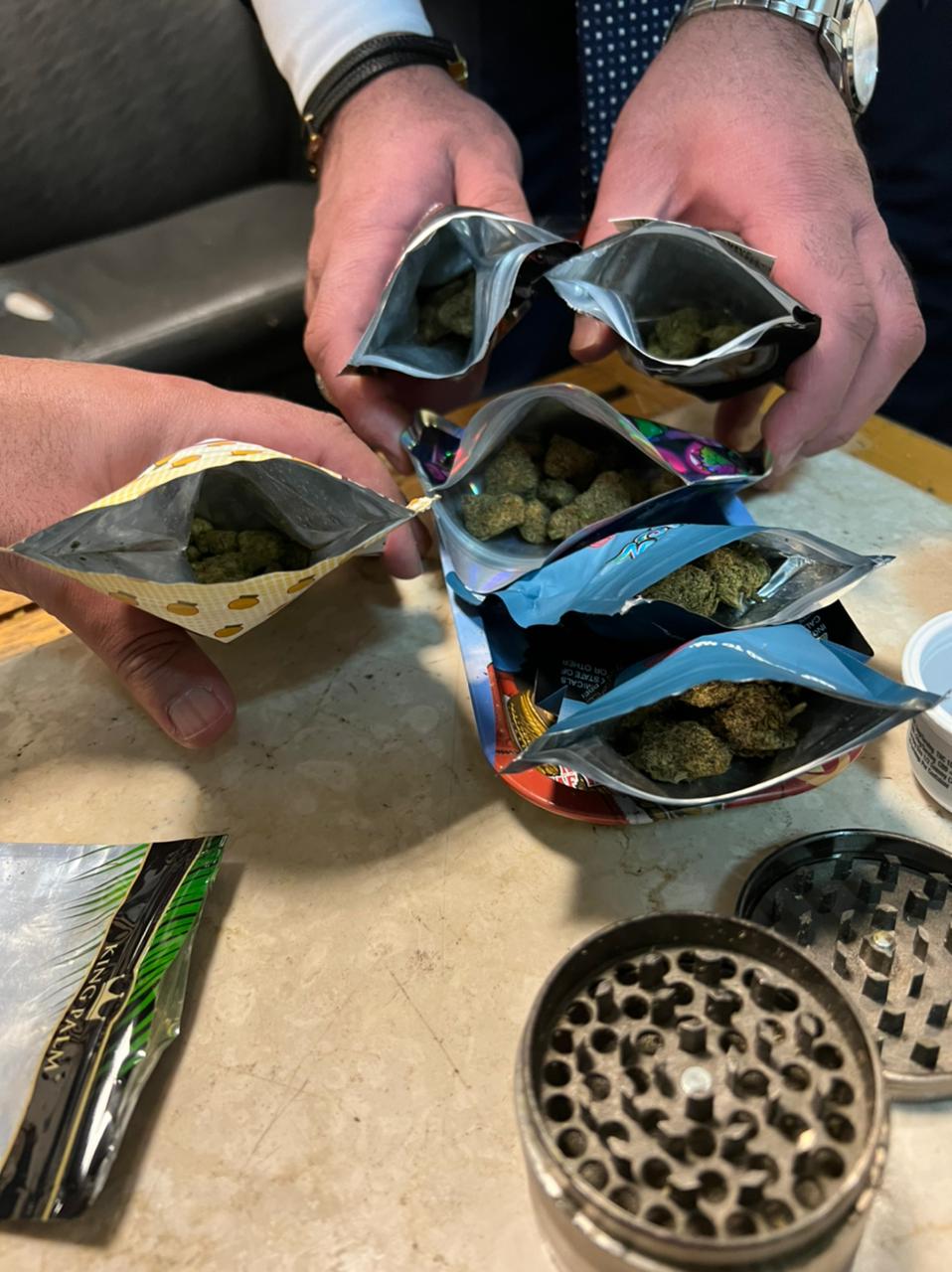 وقام أحمد عمر مدير الحركة المشرف على الصالة بتكليف هاني محمود وأحمد سعيد وتوني فكري، مأموري الجمرك، بتفتيش حقائب الراكب وتفتيشه ذاتيا؛ فتبين وجود عدة أكياس صغيره تحتوي على مادة الماريجوانا المخدرة بوزن 60 جراما تقريبا وعلبة بلاستيك صغيرة بها حلوى بالماريجوانا و3 سجائر محشوة بالماريجوانا المخدرة ومطحنة خاصة بطحن مخدر الماريجوانا داخل حقائبه.