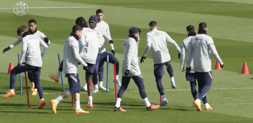 ويغيب عن تدريبات باريس جيرمان الفرنسي، ماركو فيراتي، عبدو ديالو، كيلور نافاس، جوليان دراكسلر، أندير هيريرا، خوان بيرنات، ليفين كورزاوا.