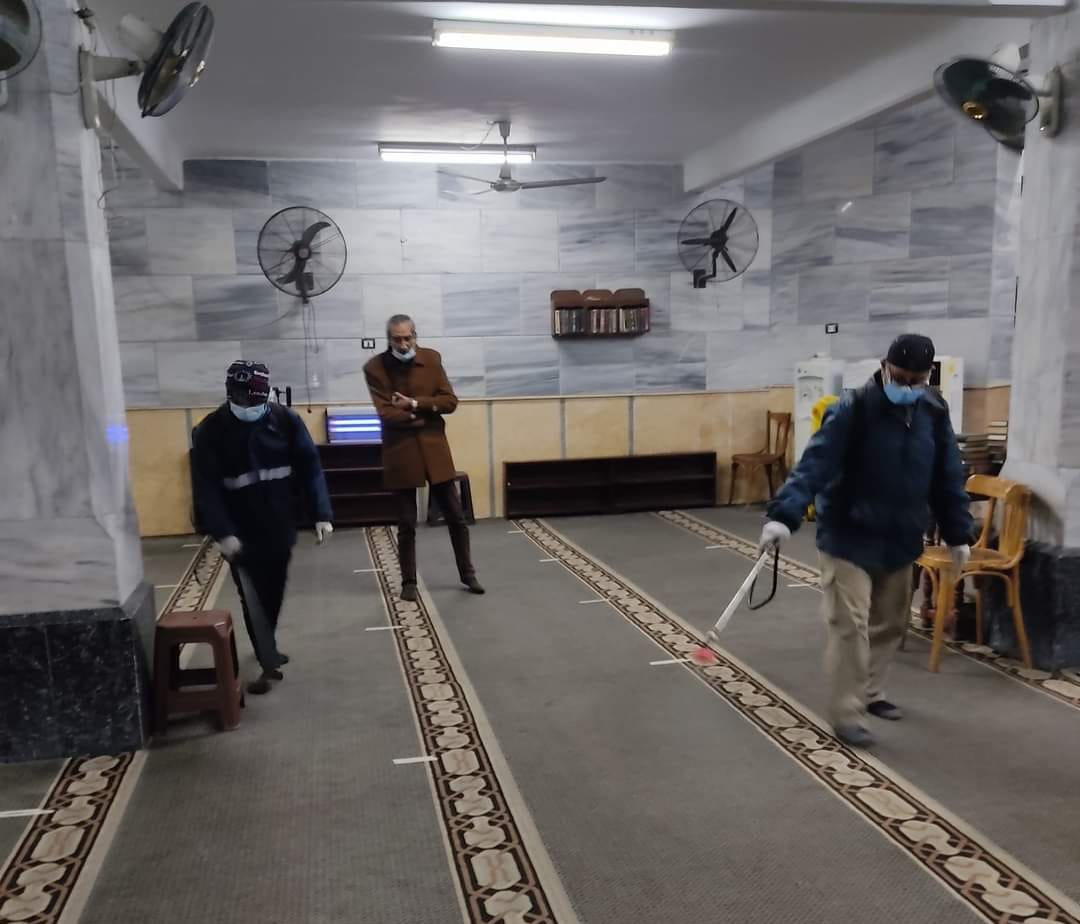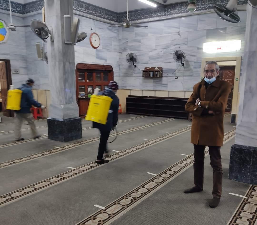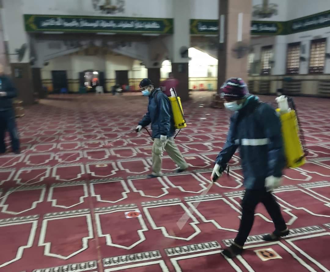 وقاد المهندس أسامة رخا، مستشار المحافظ، حملات مكثفة لرش وتطهير مساجد المحافظة، وذلك من خلال معدات الرش والتبخير، باستخدام خامات عالية الكفاءة من الكحول لضمان خلو المساجد من العدوي، حفاظًا على صحة المواطنين من فيروس كورونا، وتنفيذًا لإجراءات لجنة المكافحة.
