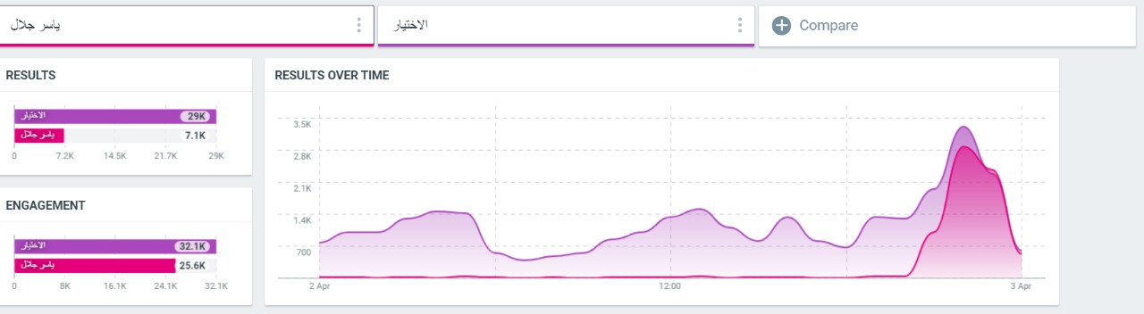 وكان تفاعل الجمهور مع الاختيار3 الأكثر على تويتر بنسبة 92.8%، ثم المنصات الإخبارية بنسبة 4.7%، فيما كانت تواجد ياسر جلال على تريند منصات السوشيال ميديا بنسبة 94.4% يليه المنصات الإخبارية بنسبة 4.7%.