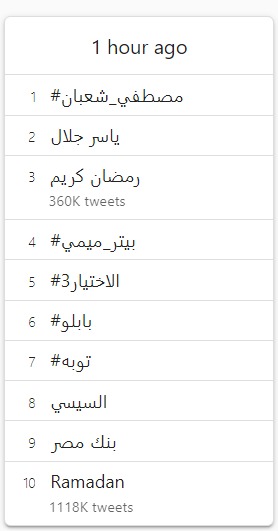 وعلى تريند تويتر تصدر رامز جلال لفترة وجيزة أثناء وعقب انتهاء برنامجه رامز موڤي ستار الذي يعرض وقت الإفطار، ليختفي بعد عرض حلقات من مسلسلات درامية أخرى.