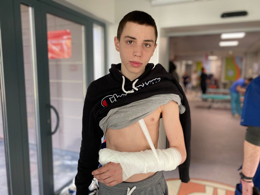 يقول المراهق يوري البالغ 14 عامًا من عمره وهو من سكان بوتشا في لقاء مع الصحافة الأوكرانية: حينما كنا نركب الدراجات خرج جندي روسي من خلف المنزل توقفنا ورفعنا أيدينا وقلنا إننا لا نملك أسلحة، لكن الجندي بدأ بإطلاق النار على والدي الذي سقط على الأرض فورًا، ثم واصل إطلاق النار علي وأصابتني رصاصتان في ذراعي، وقعت على الأرض، أطلق الجندي رصاصة أخرى على رأسي، لكن الرصاصة لم تصبني، بعد ذلك كان يوري ملقى على الأرض لعدة دقائق، فور انصراف الجندي الروسي اتجه راكضًا إلى أقرب ملجأ، حيث تلقى الإسعافات الطبية الأولية، أما والد الصبي فقُتل وهو في 47 عامًا من عمره.