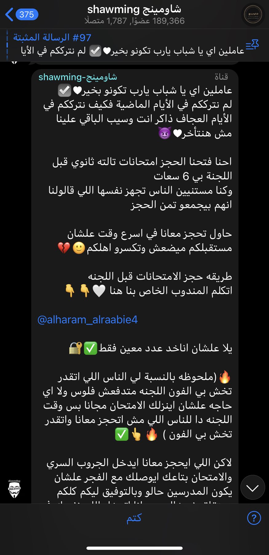 ووصل عدد المنضمين بالجروب لقرابة 190 ألف عضو، حيث يدعو أدمن الجروب الطلاب للحجز، ودفع مبالغ مالية بغرض الاحتيال عليهم مقابل زعمه بتسريب الامتحانات.