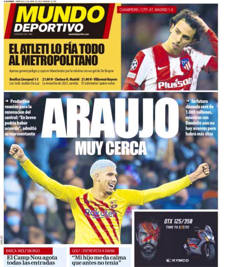 قالت موندو ديبورتيفو في غلافها لعدد اليوم الأربعاء، إن أراوخو قريب جدًا من الاتفاق مع إدارة برشلونة، وأوضحت أن هناك لقاءً مثمرًا لتجديد عقد أراوخو، واعترف وكيل أعماله بأنه قد يكون هناك اتفاقًا قريبًا.