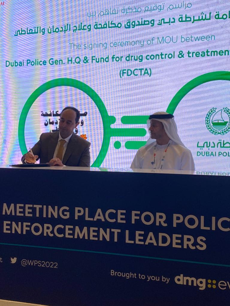 ووقع بروتوكول التعاون كل من عمرو عثمان، مساعد وزير التضامن الاجتماعي ومدير صندوق مكافحة وعلاج الإدمان والتعاطي في جمهورية مصر العربية، والعميد عيد محمد ثاني حارب، مدير الإدارة العامة لمكافحة المخدرات، عن اللواء الخبير خليل إبراهيم المنصوري، مساعد القائد العام لشؤون البحث الجنائي في القيادة العامة لشرطة دبي.
