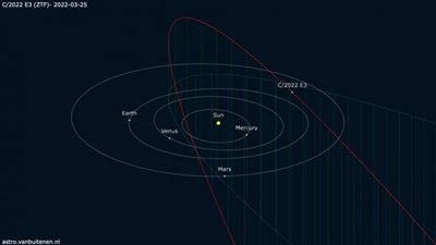 قالت الجمعية الفلكية في جدة، إن الكرة الأرضية شهدت اليوم الأربعاء 06 أبريل 2022، عبور كويكب صغير مكتشف حديثًا يسمى 2022 GN1، يبلغ قطره 10 أمتار ويتحرك بسرعة 15.5 كيلومتر بالثانية، وكان في أقرب نقطة على مسافة 127،000 كيلومتر، وهي تعادل ثلث المسافة بين الأرض والقمر.