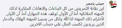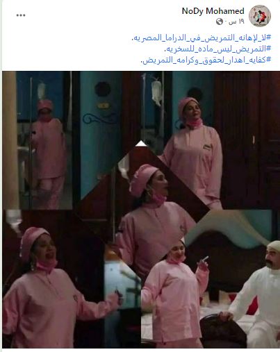 وطالب عدد من الممرضات على مواقع التواصل الاجتماعي، بضرورة التدخل من قبل النقابة العامة للتمريض لمنع هذا المشهد، أو التقدم باعتذار رسمي من القائمين على العمل الدرامي، قائلين: “ أين نقابة التمريض من كل الإهانات المتكررة للمهنة الملائكية، أما آن الأوان لوقف هذه المهازل، واحترام هذه المهنة”.