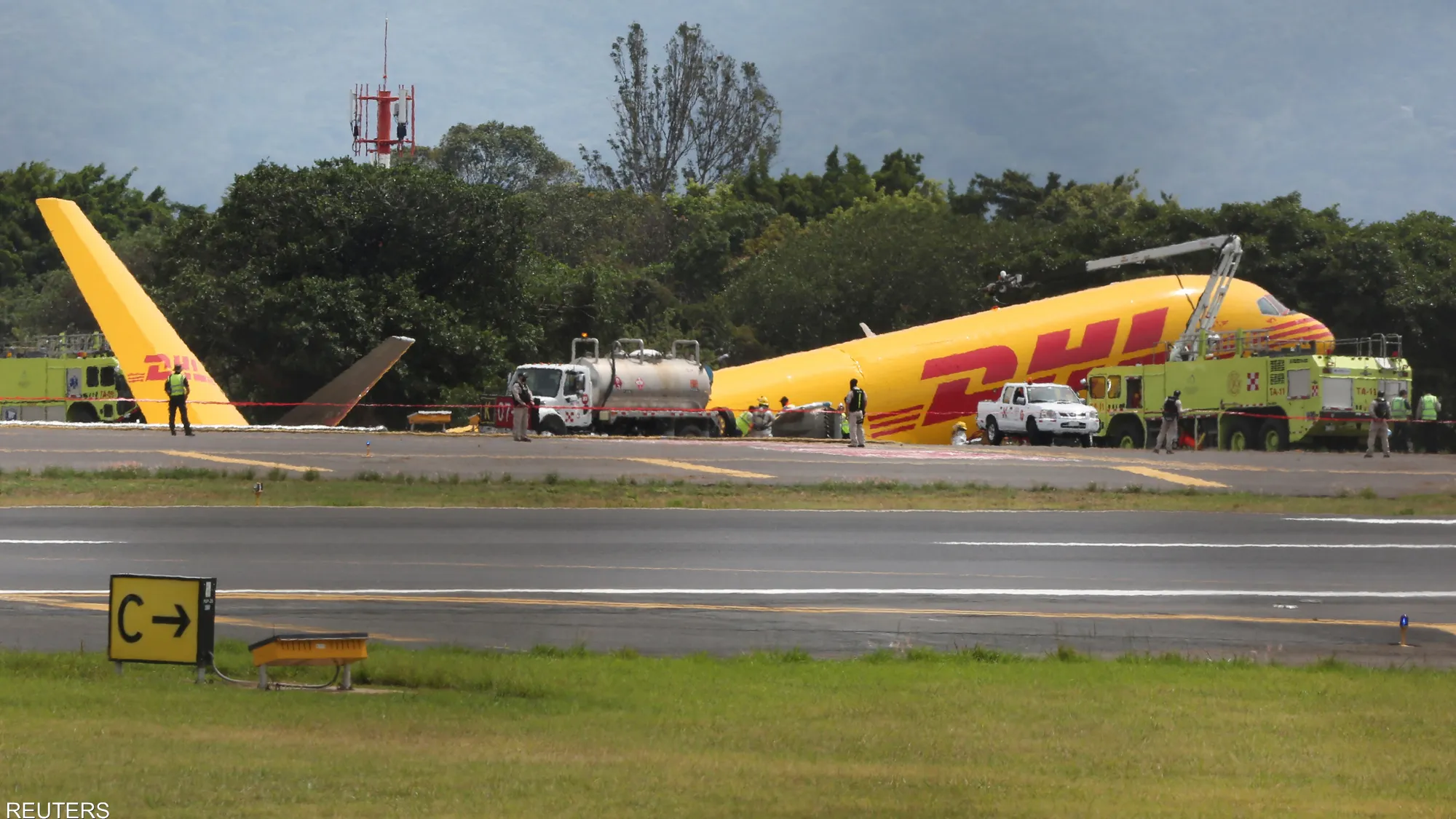 طائرة شحن تنشطر لجزأين خلال هبوط اضطراري بمطار في كوستاريكا| فيديو وصور