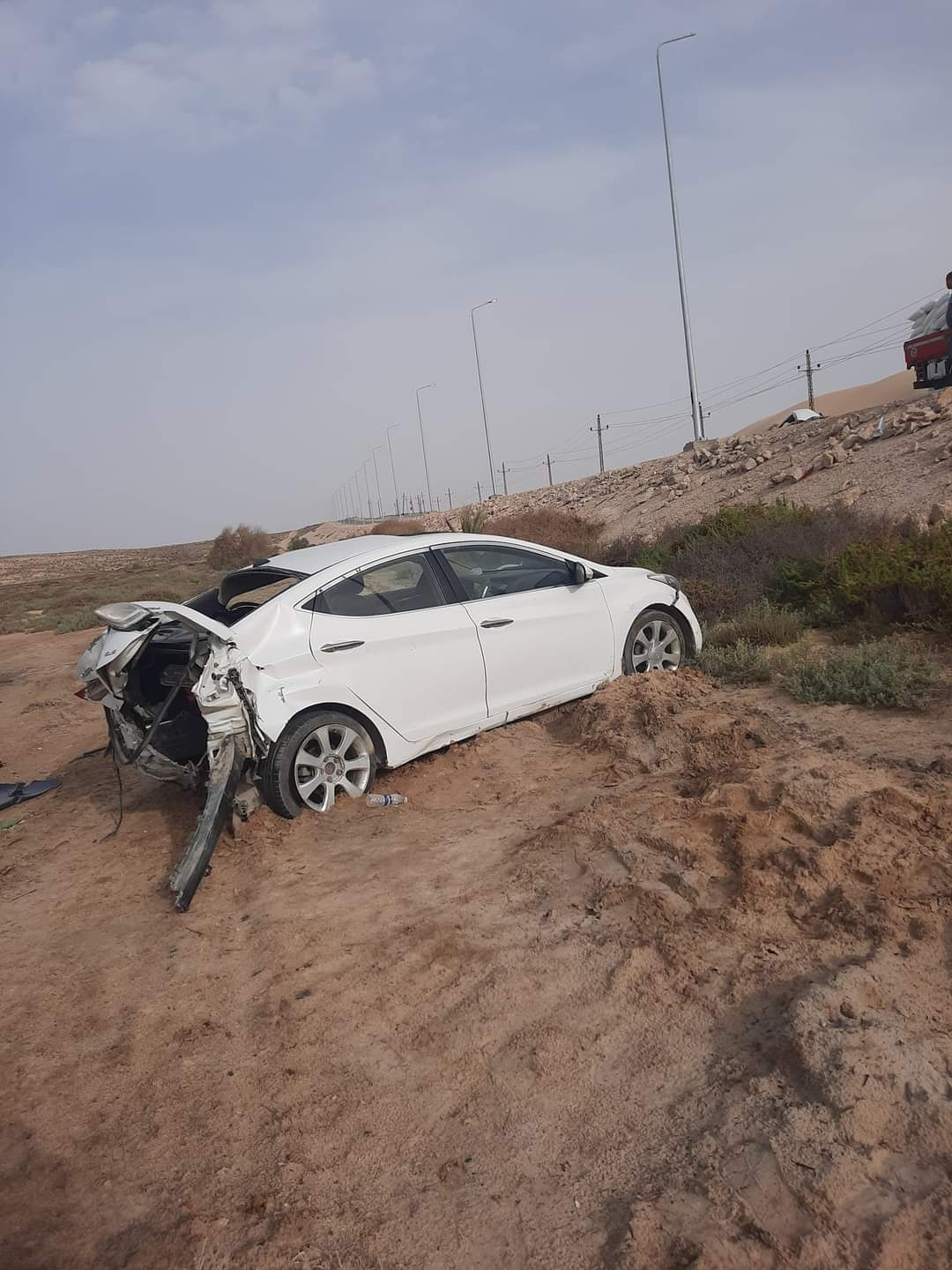 إصابة مواطن وزوجته في انقلاب سيارة على الطريق الدولي بئر العبد - القنطرة