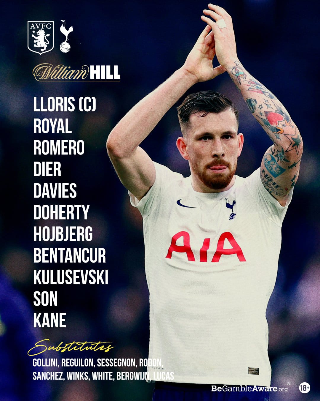 أعلن الإيطالي أنطونيو كونتي المدير الفني توتنهام هوتسبير، تشكيل فريقه لمواجهة نادي أستون فيلا في بطولة الدوري الإنجليزي الممتاز.