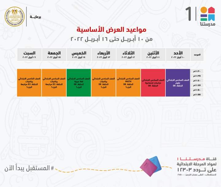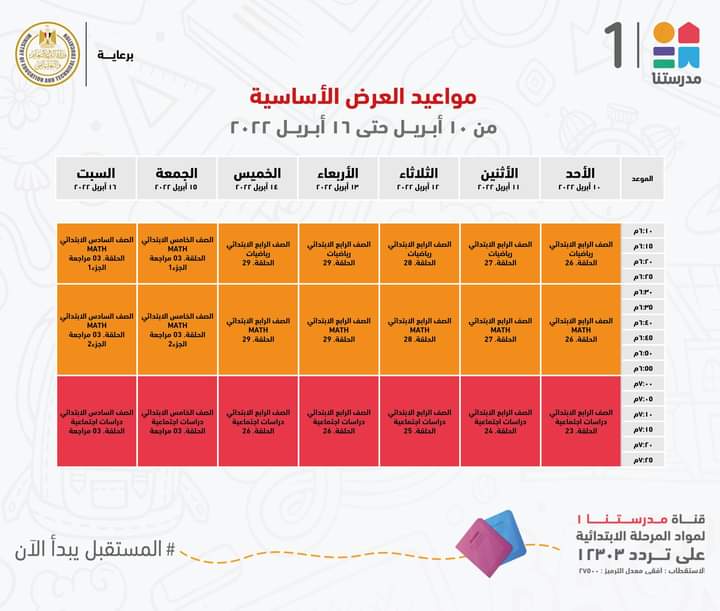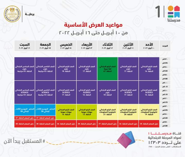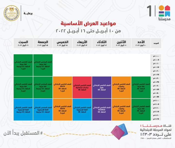 قناة مدرستنا تعلن جداول البرامج التعليمية للمرحلة الابتدائية | صور