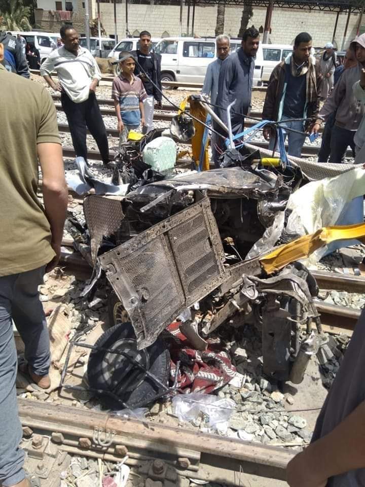 مصرع سائق في حادث تصادم قطار مكيف بتوك توك على مزلقان المراغة