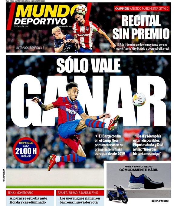 عنونت موندو ديبورتيفو في غلافها بـ الأمر يستحق الفوز فقط، حيث قالت إن برشلونة لديه ثقة في كامب نو للوصول إلى نصف نهائي أوروبي منذ عام 2019.