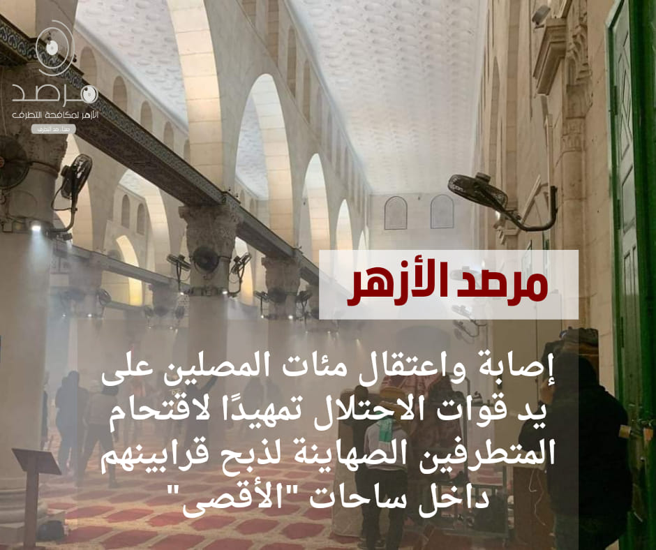 دعا مرصد الأزهر لمكافحة التطرف، إلى تحرك دولي لنصرة أبناء الشعب الفلسطيني المناضل ووقف انتهاكات الكيان الصهيوني الإرهابي ضده.