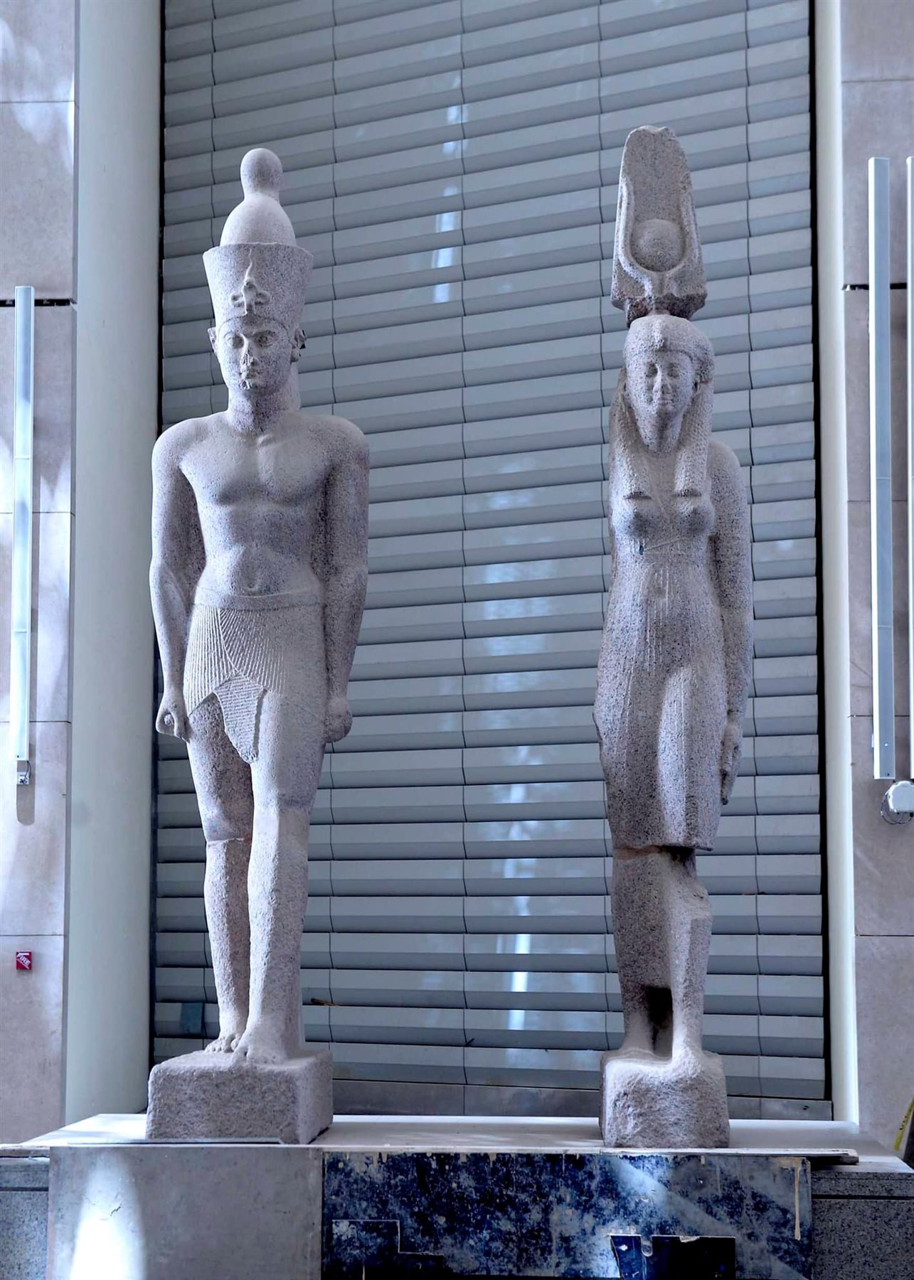 ويضم المتحف المصري الكبير، داخل قاعة البهو العظيم مجموعة من القطع الأثرية الثقيلة، ومنها عامود الملك مرنبتاح المعروف لدى علماء المصريات والآثاريين المتخصصين في دراسات عصر الرعامسة باسم عمود المطرية، وتمثال مزدوج للآلهة آمون وموت وعمود من الجرانيت الوردي للملك رمسيس الثاني، بالإضافة إلى تمثال من الحجر الجيري للمعبودة إيزيس تحمل طفلها حورس، ولوحة كبيرة من الحجر الجيري للملك أمنمحات الأول فضلا عن عدد آخر من اللوحات الضخمة والمنقوشة.
