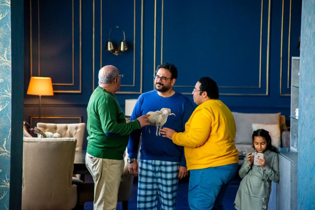 بعدما يذهب جلجل إلى روقة تجبره على ارتداء بيجامة جديدة، ثم تفاجئه بدخول أسرته بالكامل إلى الغرفة المقيمين بها لتهنئتهم بزواجهم في الصباحية، ويبدأ والده إحسان "إسماعيل فرغلي" في السخرية منه كعادته، وتتحول روقه مرة أخرى في تعاملها معه وتعامله بلطف وحنية أمام عائلته، ثم يعود إلى سلمى مره أخرى مرتديا بيجامة عليها "جدي" ويخدعها بأنه قرر يرتدي بيجامة عليها برجها، ثم يتصل أصدقائها بها ويطلبوا نزولها من الغرفة إلى لوبي الفندق.