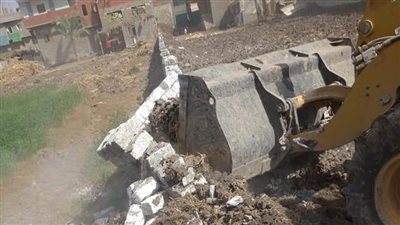 موظفو الوحدة المحلية بالمنيا ينفذون إزالة التعديات على الأراضي بالأيدي