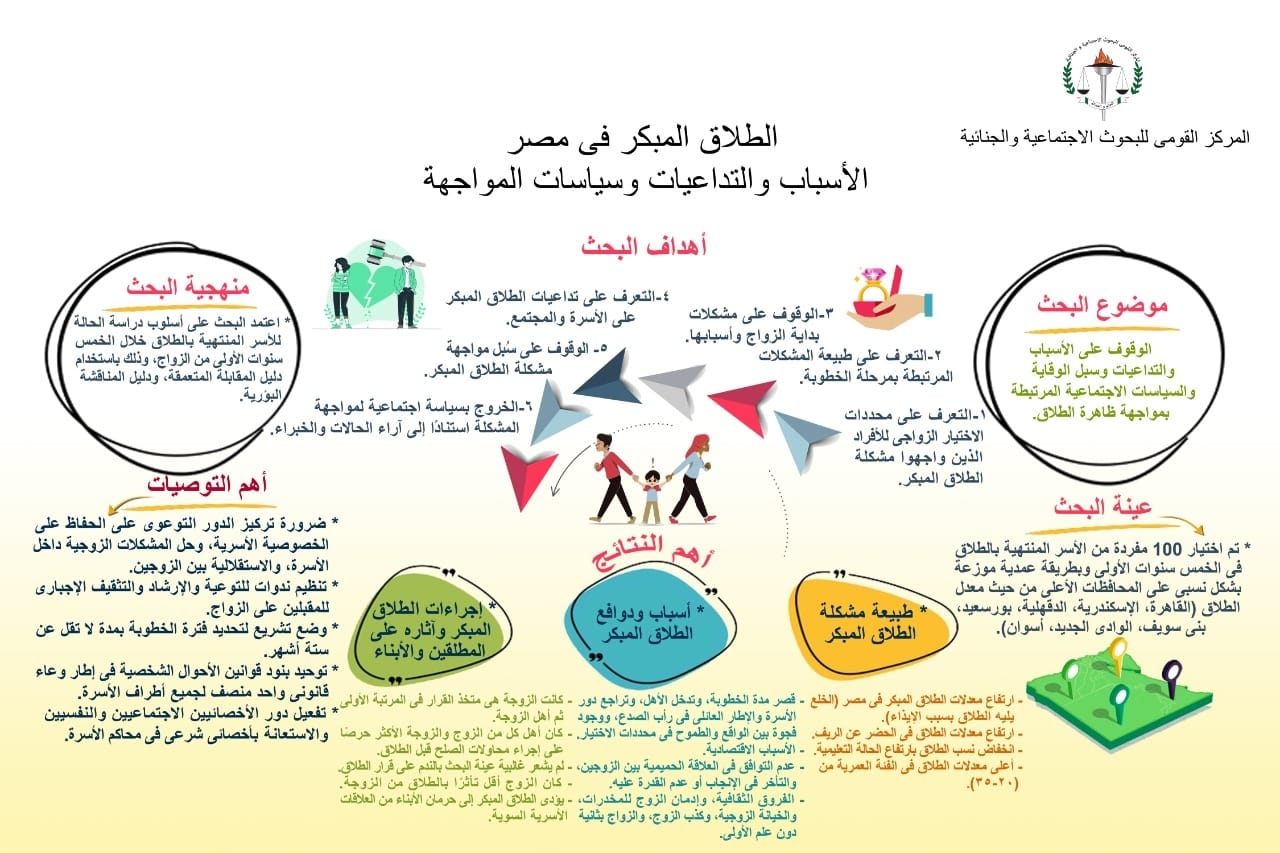 ووفقًا للدراسة الاستكشافية للمركز القومي للبحوث الاجتماعية والجنائية، جاءت أسباب ودوافع الطلاق المبكر، كالتالي: