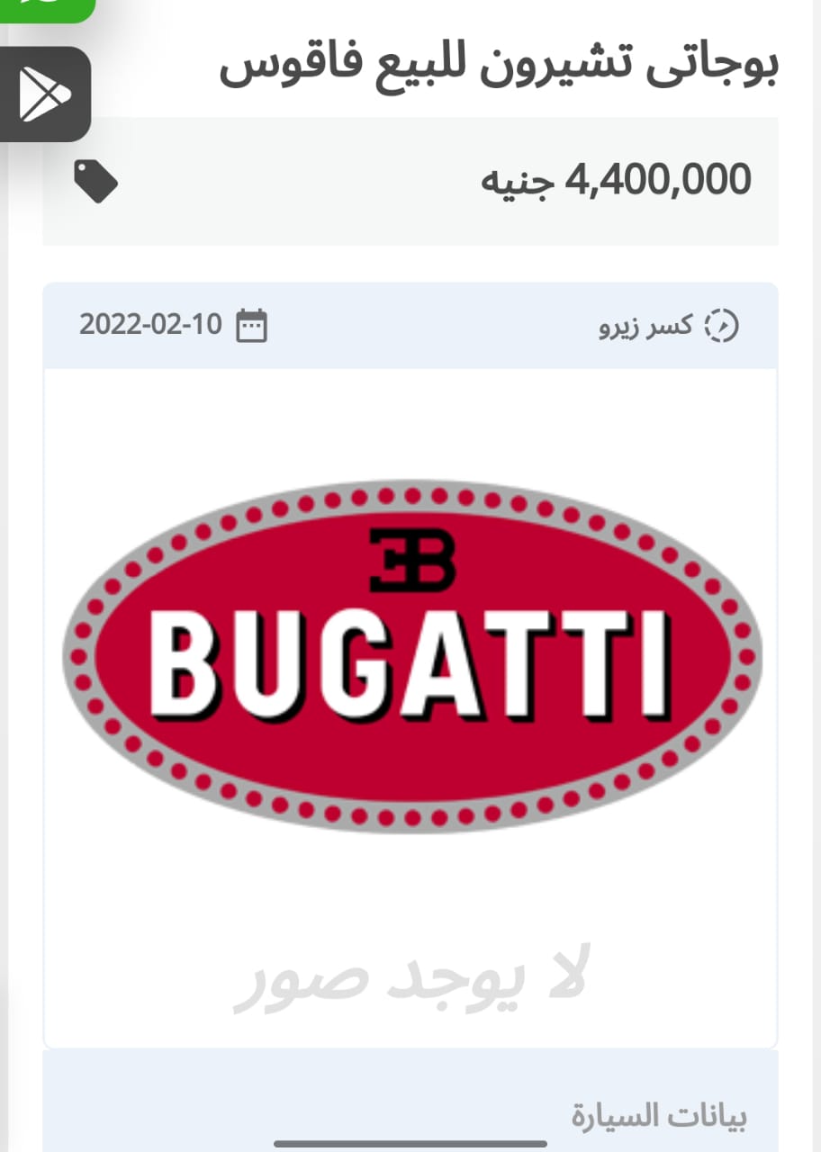 وعلى الرغم من أن نسخة بوجاتي تشيرون 2021 مستعملة، إلا أن سعرها تخطى حاجز الـ 4 ملايين جنيه مصري.