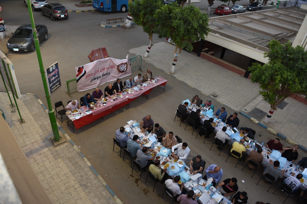 نظم اتحاد طلاب جامعة سوهاج، بالتعاون مع طلاب من أجل مصر، الإفطار الجماعي الرمضاني لجميع منتسبيها، وذلك بالحرم الجامعي القديم، بجوار مبنى الإدارة المركزية، وبحضور الدكتور مصطفى عبد الخالق رئيس الجامعة، والدكتور حسان النعماني نائب رئيس الجامعة للدراسات العليا والبحوث، ورئيس طلاب من أجل مصر، والدكتور عبدالناصر يس نائب رئيس الجامعة لشئون التعليم والطلاب، والمحاسب أشرف القاضي أمين عام الجامعة، ولفيف من العمداء وأعضاء الهيئة التدريسية ومديري العموم والعاملين والطلاب.