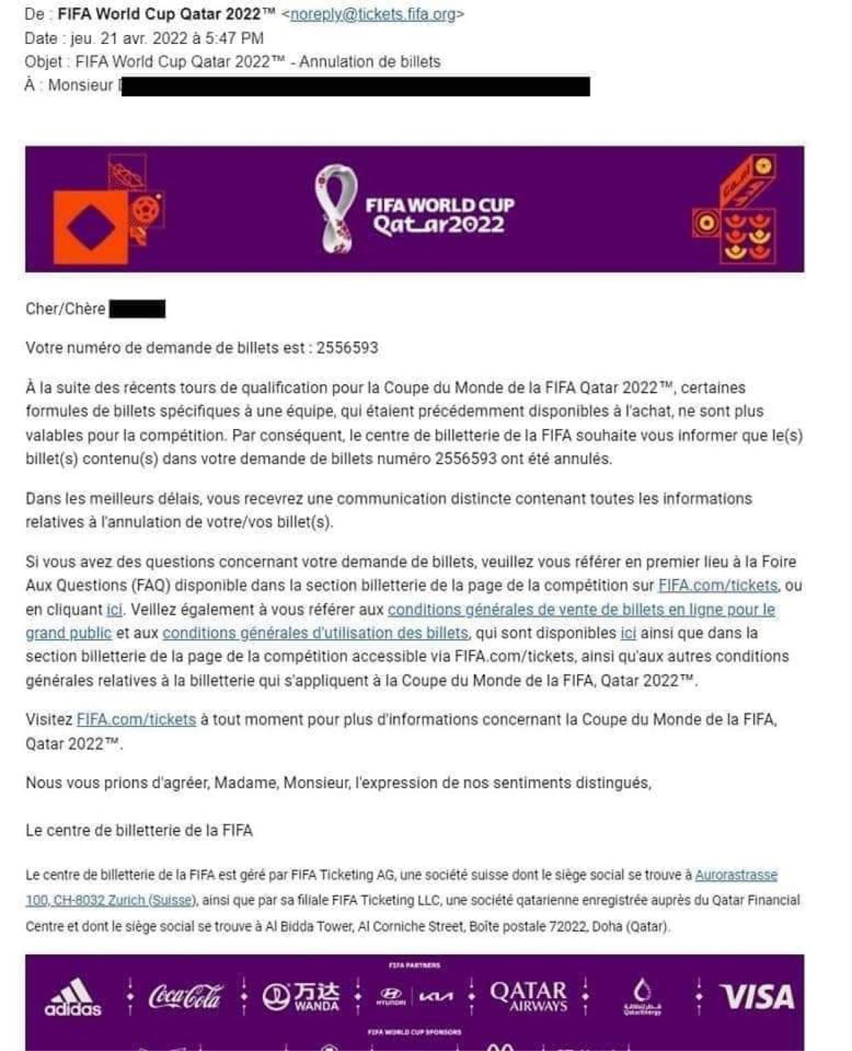 ووفقًا لـ صحيفة "lagazettedufennec" الفرنسية، فإن فيفا ألغت حزمة التذاكر المخصصة للجماهير الجزائرية، والتي تم عرضها على الموقع الرسمي للمونديال، قبل انطلاق المرحلة الحاسمة من تصفيات قارة إفريقيا.