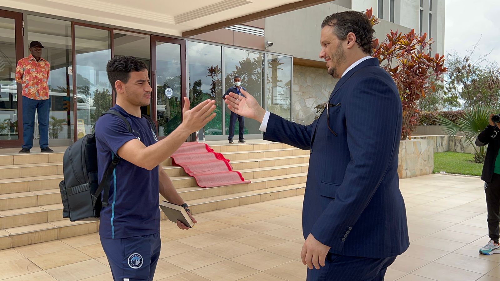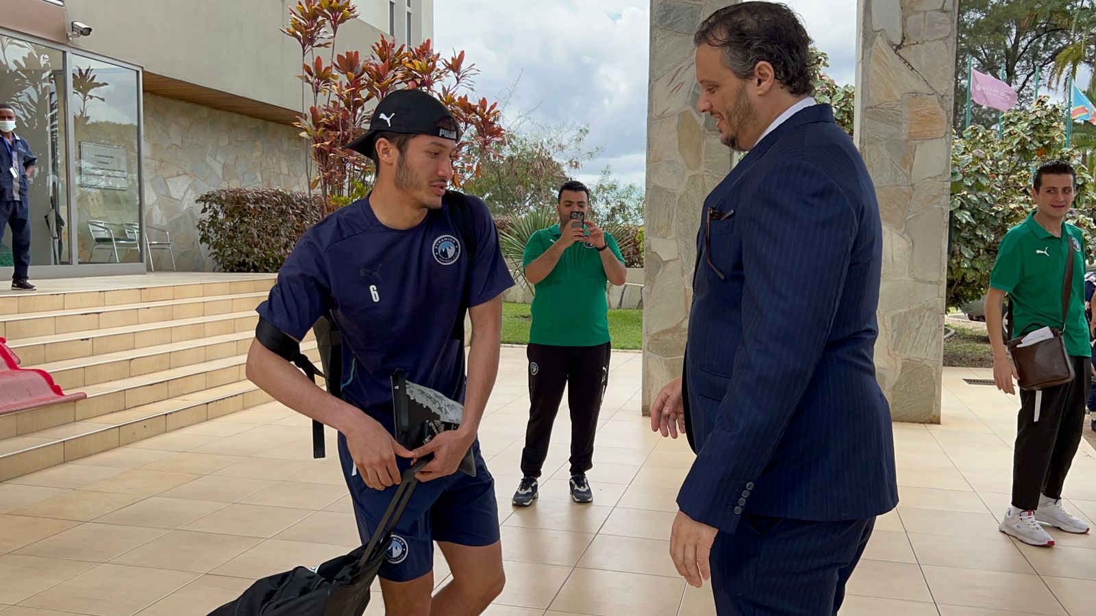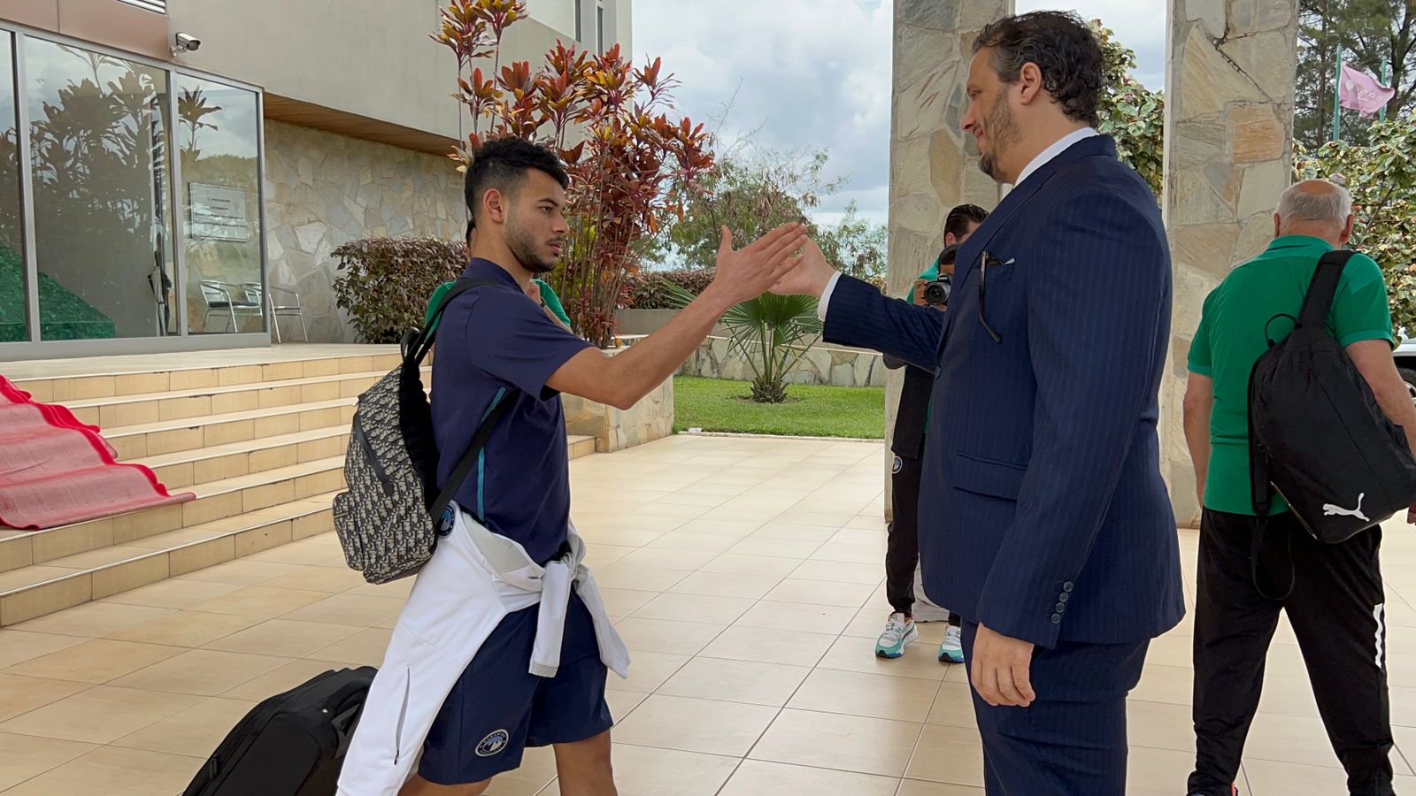 وحرص المهندس ممدوح عيد الرئيس التنفيذي للنادي، ورئيس البعثة على تحية اللاعبين، قبل التوجه إلى ملعب المباراة وطالبهم بضرورة الفوز والتأهل للدور المقبل من البطولة القارية.