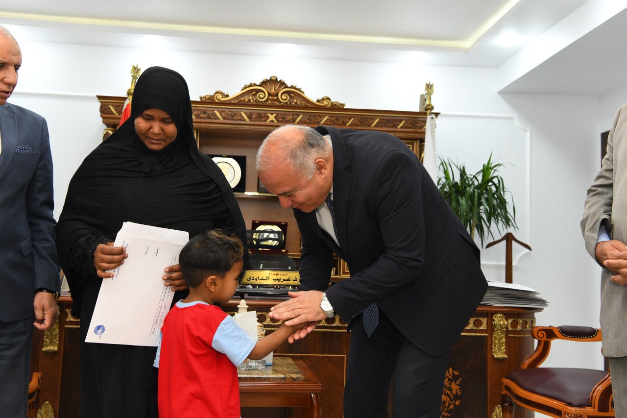 سلم اللواء أشرف الداودي، محافظ قنا، اليوم الثلاثاء، عقود عمل بشركة مياه الشرب والصرف الصحي للشاب حسنين، نجل شهيد الواجب عويضة رجب شافعي، وأميرة يوسف محمد، زوجة الشهيد محمود ابن رواحة، تكريما لروحهما الطاهرتين، بحضور حازم عمر نائب المحافظ، المهندس نبيل الطيبي، سكرتير عام المحافظة، محمد صلاح أبو كريشة السكرتير العام المساعد، المهندس رجب عرفة، رئيس مجلس إدارة شركة مياه الشرب والصرف الصحي بقنا.